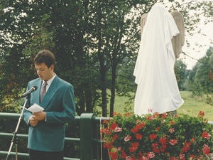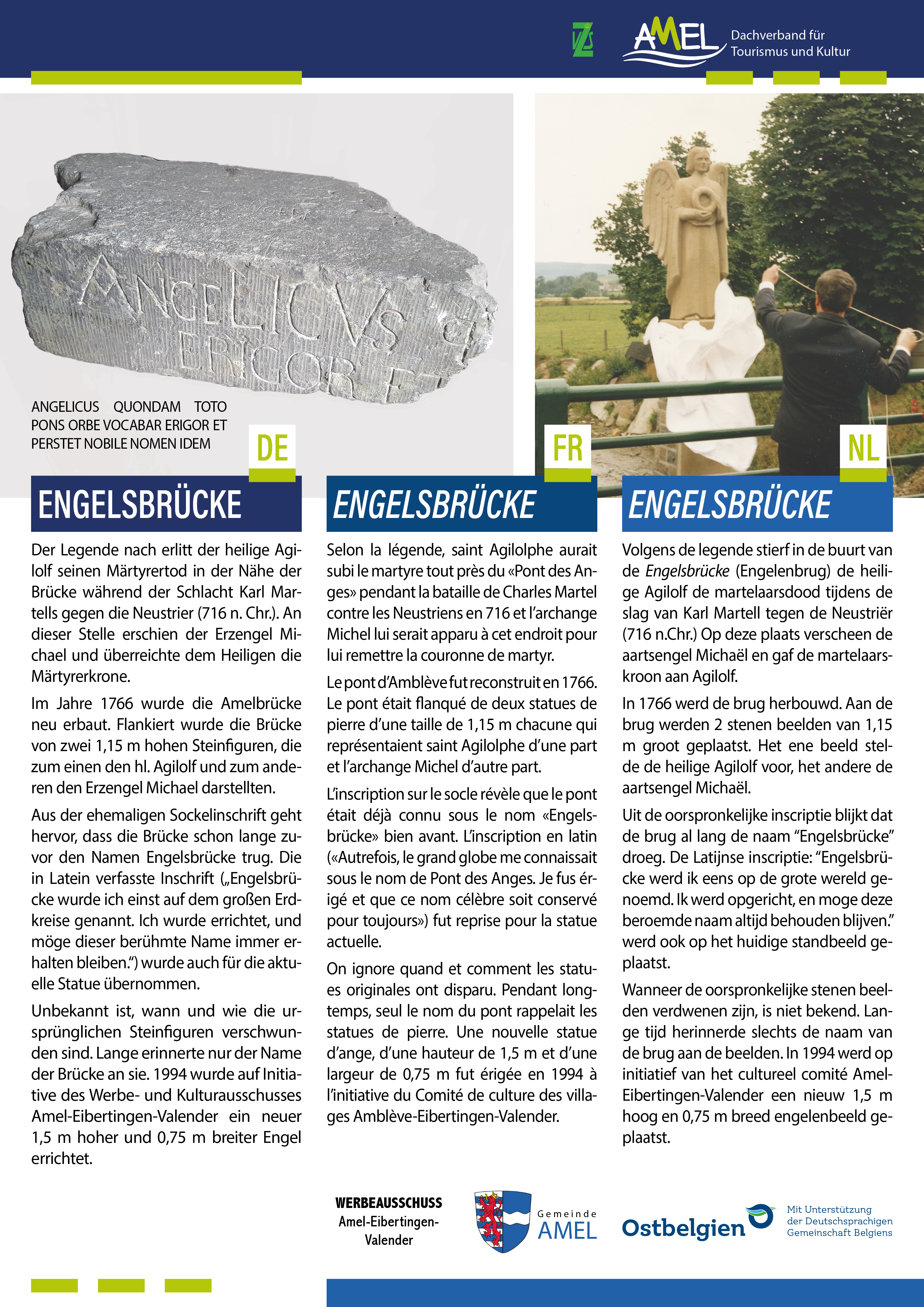 Im Dunkeln liegt nach wie vor, wann und wie die ursprünglichen Steinfiguren verschwunden sind. Lange Zeit erinnerte nur der Name der Brücke an diese Statuen. 1994 wurde auf Initiative des Werbe- und Kulturausschusses Amel-Eibertingen-Valender mit Unterstützung der Gemeinde und zahlreicher Spenden der Dorfbevölkerung ein neuer 1,5 m hoher und 0,75 m breiter Engel errichtet. Die Statue wurde von einem deutschen Steinmetzbetrieb gefertigt.