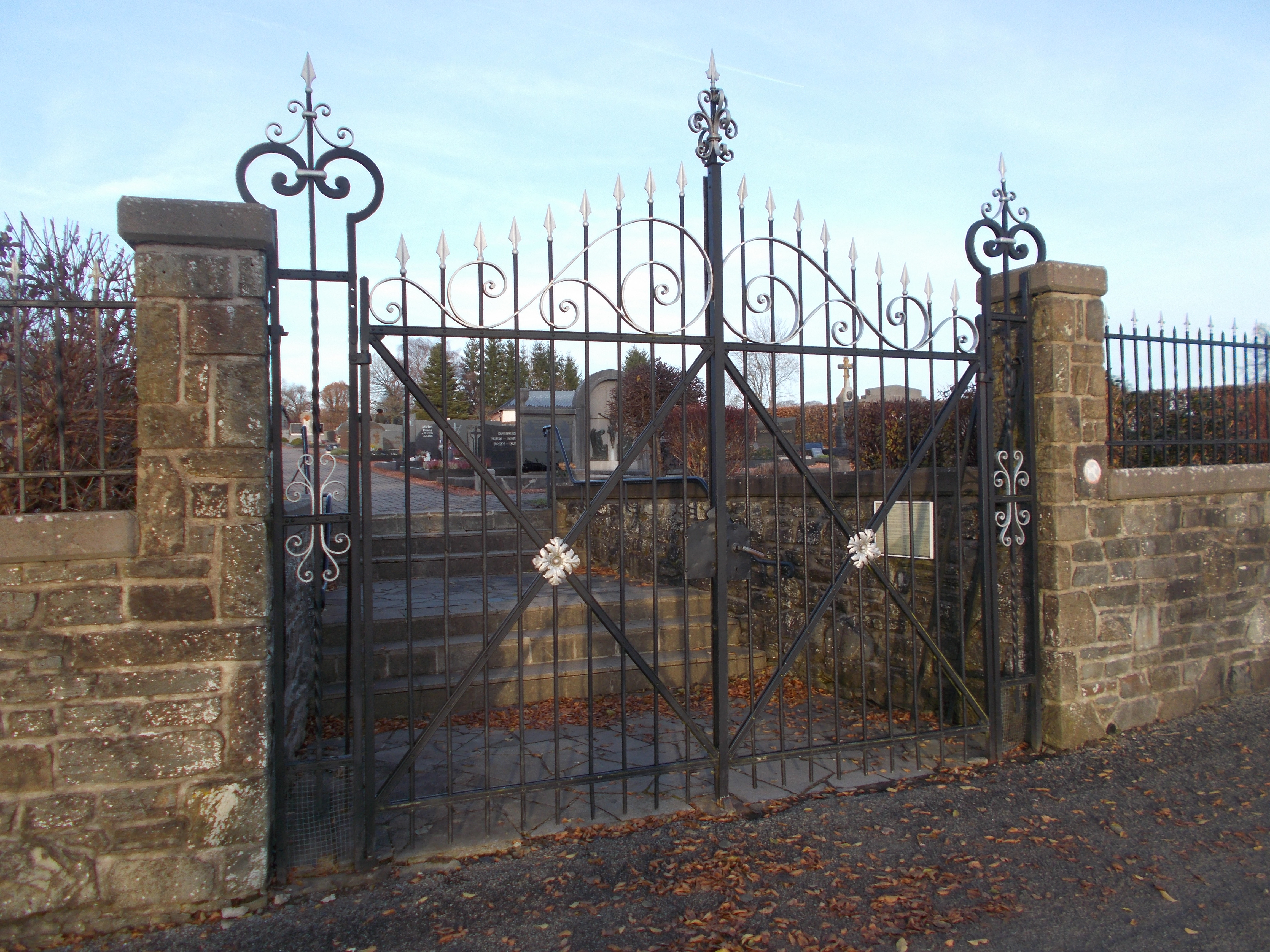 Das Tor, welches am oberen Ende der herrlichen Baumallee den gesamten Komplex zur Straße nach Deidenberg abschloss, ziert seit mehr als 50 Jahren den Eingang des Iveldinger Friedhofs.