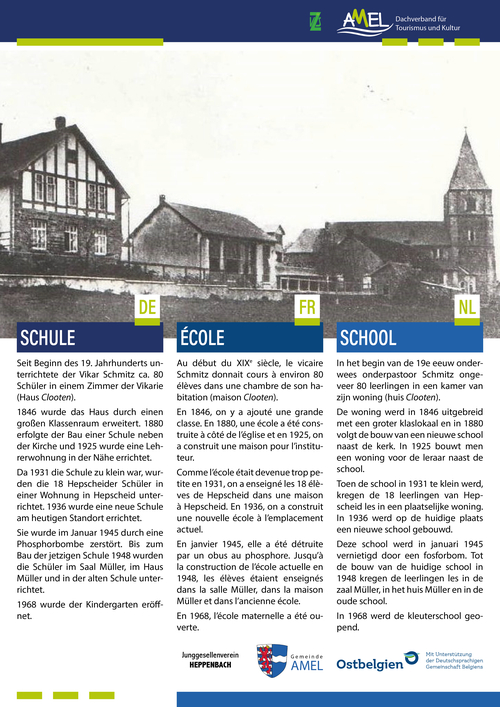 Da 1931 die Schule zu klein war, wurden die 18 Hepscheider Schüler in einer Wohnung in Hepscheid unterrichtet. 1936 wurde eine neue Schule am heutigen Standort errichtet.