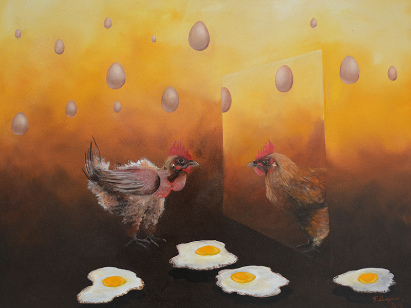 Die Lust am Malen, begann schon in der Kindheit. Seine Anfänge als Künstler machte Frank mit Stiften. Es folgte Acryl und aktuell findet er in der Ölmalerei sein Glück. Die farbenfrohen Ölgemälde behandeln zivilisationskritische Themen.