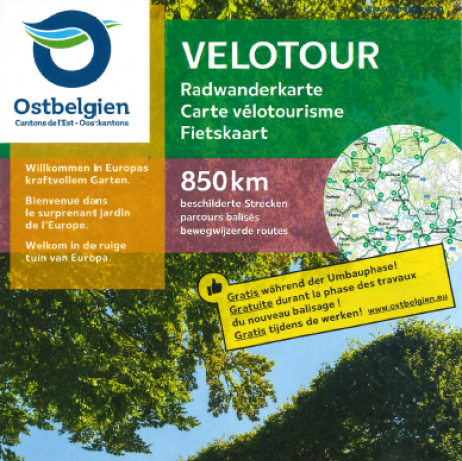 Um die Orientierung der Radfahrer während der Umbauphase bestens zu gewährleisten, veröffentlicht die Tourismusagentur Ostbelgien in regelmäßigen Abständen aktualisierte Karten des Velotour-Radwegenetzes. Die Karte verzeichnet neu beschilderte und ‚alte‘ Streckenabschnitte und ermöglicht somit einen Gesamtüberblick des Radwegenetzes.