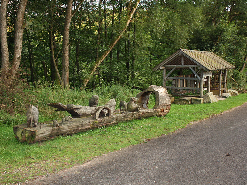 Nicht verpassen sollte man das Holzartenhaus mit dem angeschlossenen Waldlehrpfad, der durch einen Kunstpfad erweitert wurde. Start und Ziel ist an der Grillhütte in Halenfeld.