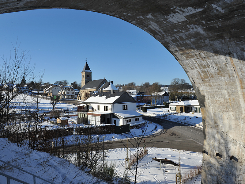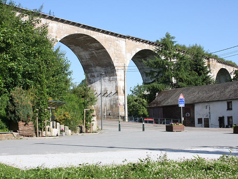 Verkehrstechnisch war BORN schon immer sehr gut aufgestellt – zu den Glanzzeiten des ostbelgischen Bahnnetzes war BORN Knotenpunt für die Bahnlinien SANKT VITH – BORN – VIELSALM und der berühmten VENNBAHN, beide über viele Jahre brachliegende Trassen in Gemeindeeigentum, die mittlerweile als RAVeL-Wege wieder zur Freude der Wanderer, Radfahrer, Reiter, Rollerbladefans, … hergerichtet wurden. Die Brücke ist das letzte noch erhaltene Bauwerk der früheren Bahnlinie SANKT VITH - BORN - VIELSALM.